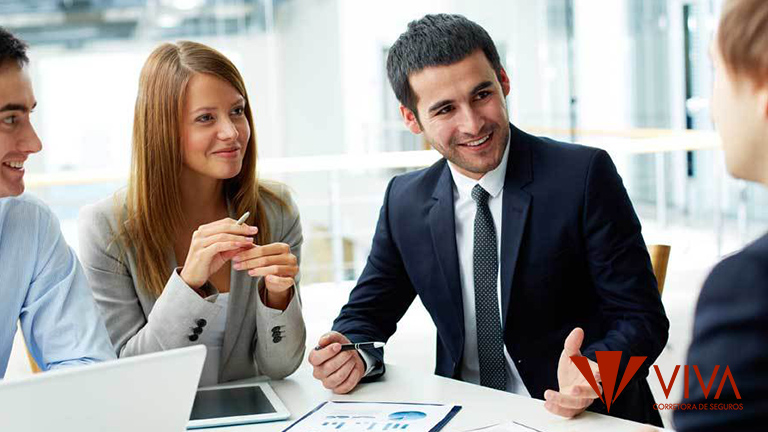 Em um universo de possibilidades na modalidade de seguros empresariais, fica difícil escolher uma imagem de identidade para o negócio. Optamos por uma reunião de negócios onde se discute sobre as coberturas oferecidas nesta modalidade.